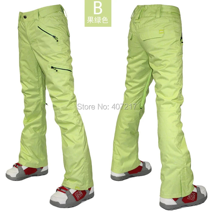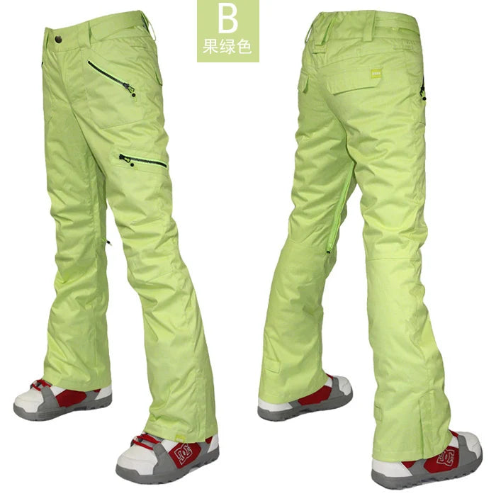 The GSOU SNOW Pro Snow Pants - Women's are slim-fitting and designed to mold to a woman’s body shape and curves for a flattering fit. Pants are lightly insulated to keep you comfy. The windproof and waterproof fabric keeps you warm and dry. Should you start to overheat, zip open the leg vents near the inseam. The tailored fit is also equipped with a zipper gusset and boot gaiter to fit over your boots or binding.