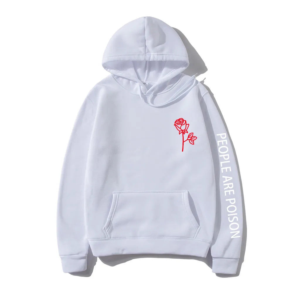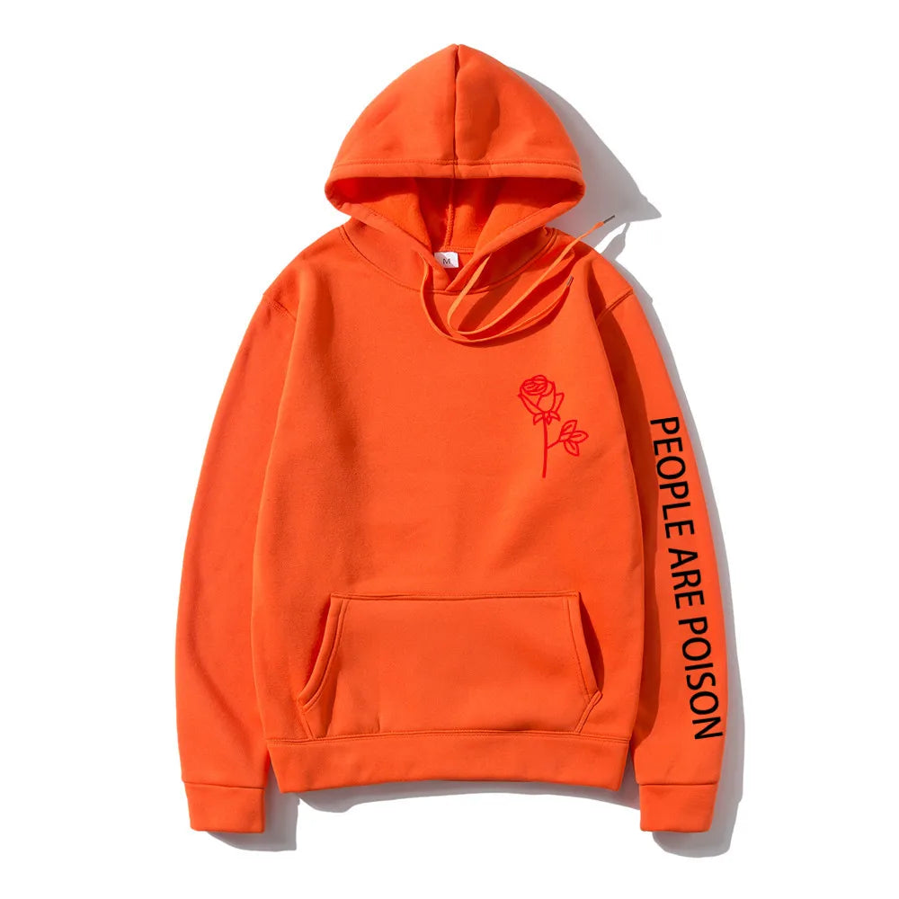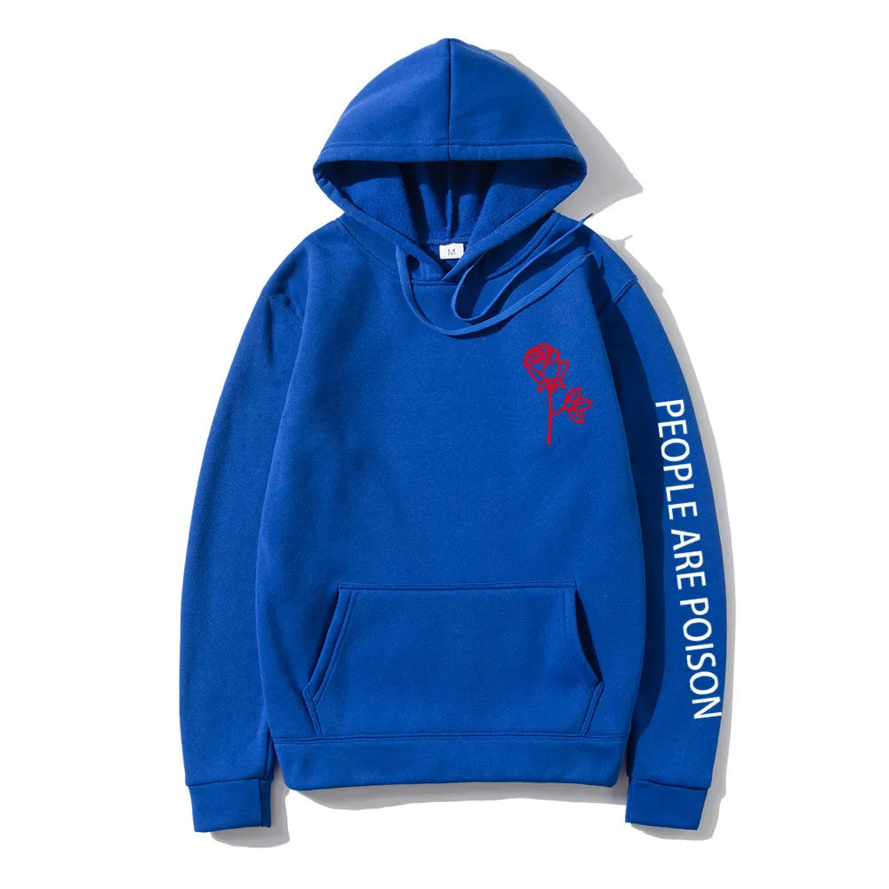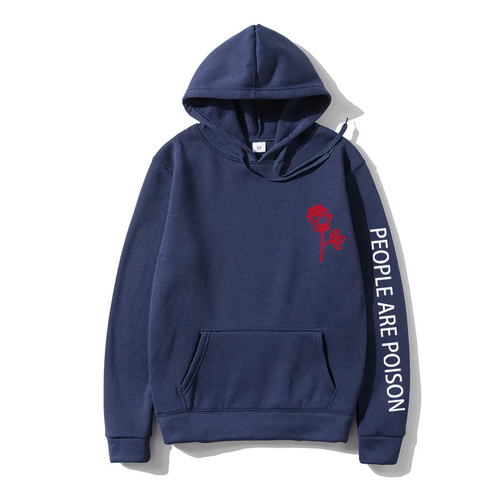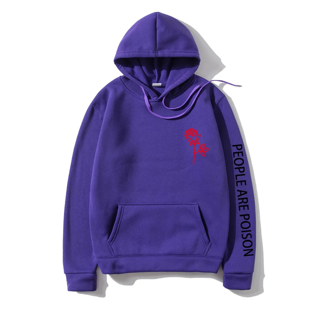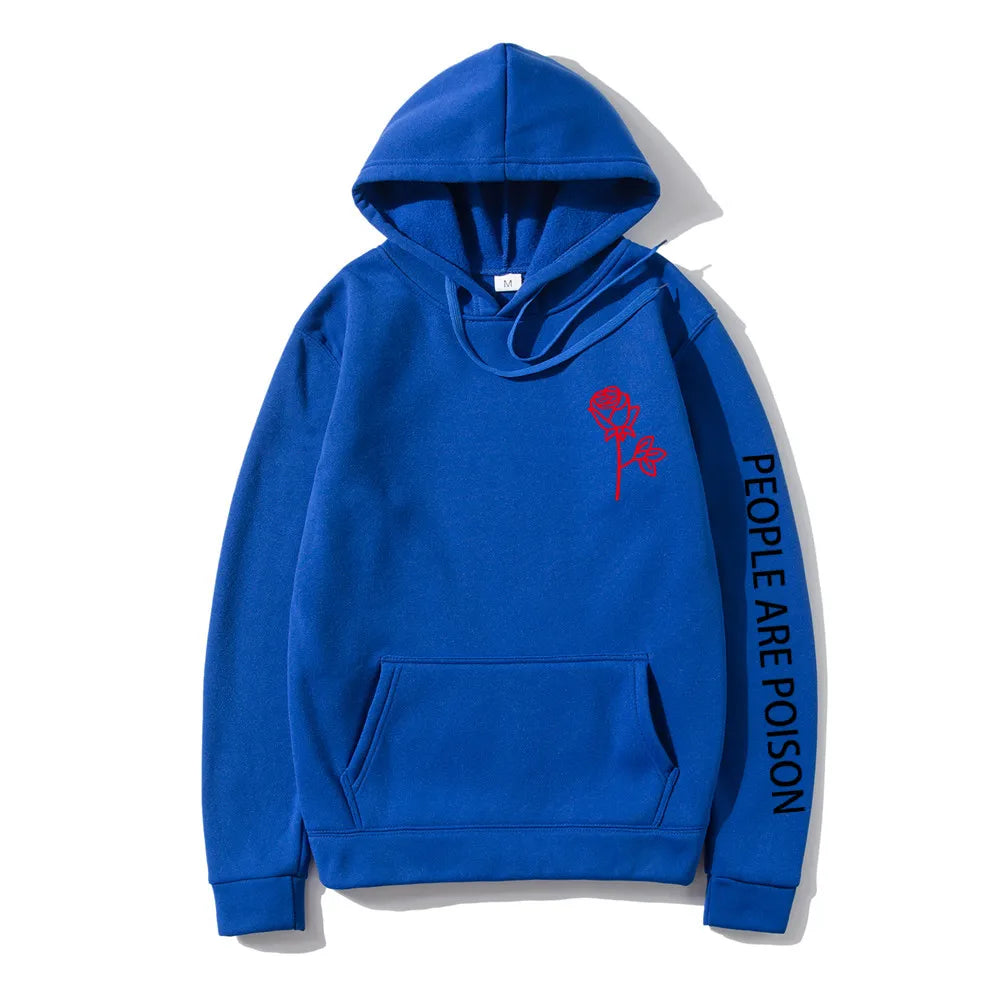 A great hoodie for the lady who has a little bad girl in her. Wear your LUNOAKVO People Are Poison Hoodie under a leather jacket or a sleeveless jean jacket. Super soft, thick cotton will keep you warm. The high neckline has a drawstring closure if it gets chilly. The front is accented with an embroidered rose on the chest and the sleeve with small lettering that give it a little edginess. The perfect hoodie to wear riding the motorcycle or to a heavy metal concert.