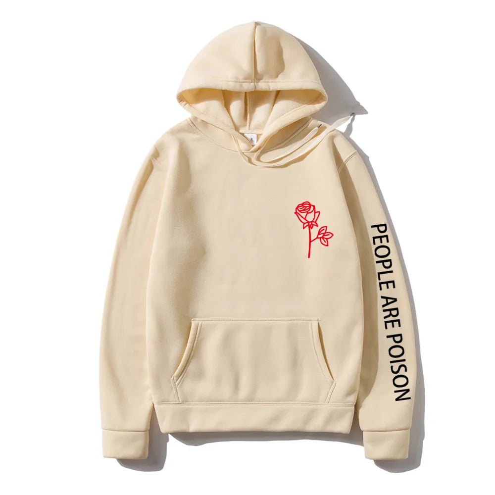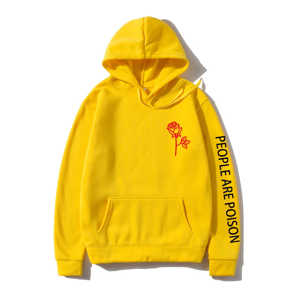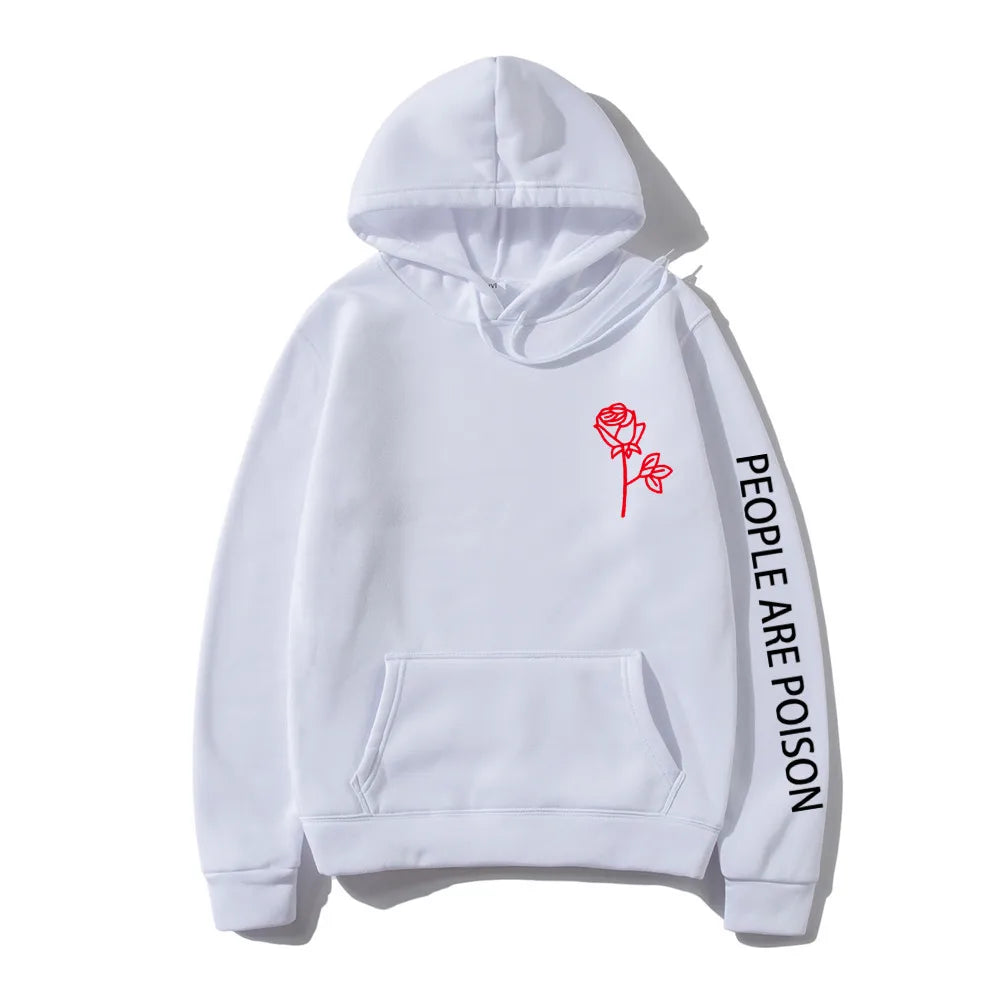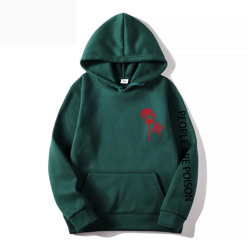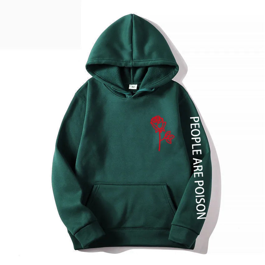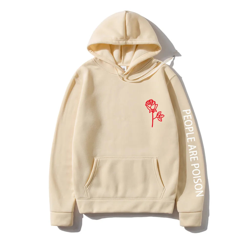 A great hoodie for the lady who has a little bad girl in her. Wear your LUNOAKVO People Are Poison Hoodie under a leather jacket or a sleeveless jean jacket. Super soft, thick cotton will keep you warm. The high neckline has a drawstring closure if it gets chilly. The front is accented with an embroidered rose on the chest and the sleeve with small lettering that give it a little edginess. The perfect hoodie to wear riding the motorcycle or to a heavy metal concert.