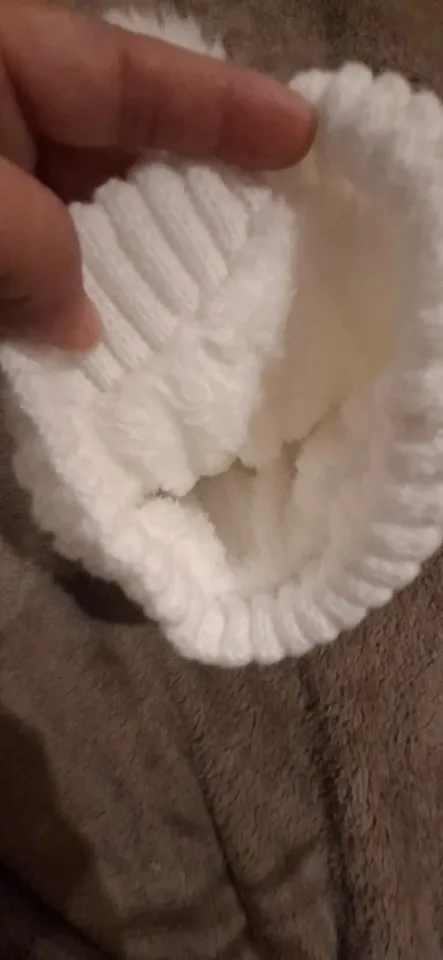 Overall, it looks attractive because the hat is visually very well done and the white inner lining feels pleasantly soft. The lining does shed a bit and leaves slight marks in the hair, but this doesn't significantly detract from its value. The lining is missing on the ears, which makes the warmth impression there a bit weaker. Despite these points, it remains a nice and well-wearable winter hat for a good price.